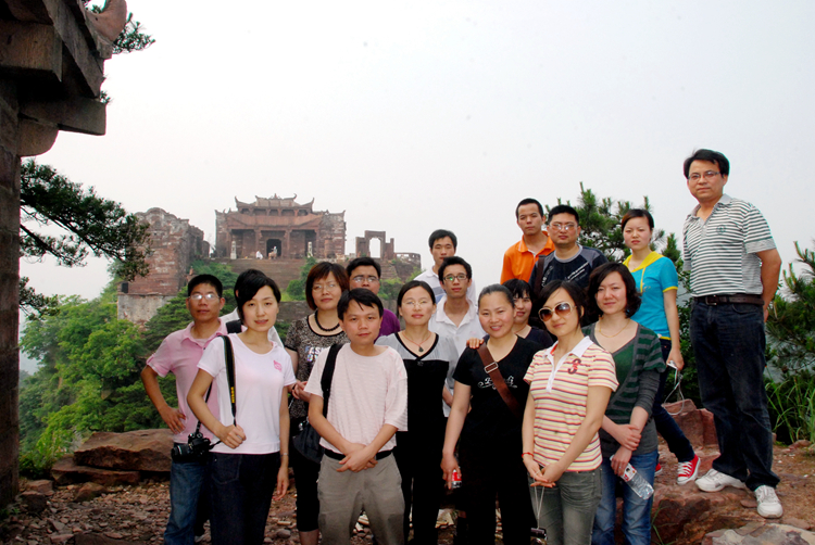 經(jīng)過兩個(gè)多小時(shí)攀登,我們終于到達(dá)山頂,站在“星德山門”的上坡處回頭望去,眾多山嶺已在我們腳下,山風(fēng)將云霧在山脊的兩邊吹得轉(zhuǎn)來(lái)轉(zhuǎn)去,讓山脊擺出了許多優(yōu)美的造型。過觀音殿,登百步梯,踏舍身巖、經(jīng)文昌閣,繞百子堂,星德山真正的主人——星子宮出現(xiàn)在我們面前。星德山是一座道教名山,人稱“道興紫覆之地”,與譽(yù)為“中國(guó)南武當(dāng)”的慈利縣五雷山隔山相望,互為犄角,山中自然景觀與人文景觀交相輝映。休息了一會(huì)后,我們便開始欣賞山上的風(fēng)景,同事們都被這美麗而壯闊的風(fēng)景所吸引,直到要下山了還依依不舍不愿離去。